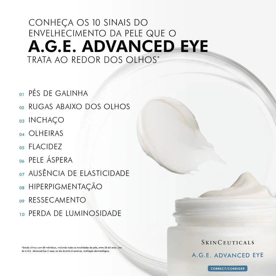 A.G.E. Advanced Eye é um tratamento anti-idade de última geração para a região ao redor dos olhos que combate o aparecimento de olheiras, pés de galinha e inchaço, associados aos produtos finais de glicação avançada (A.G.E.s), um fator importante do processo natural de envelhecimento.